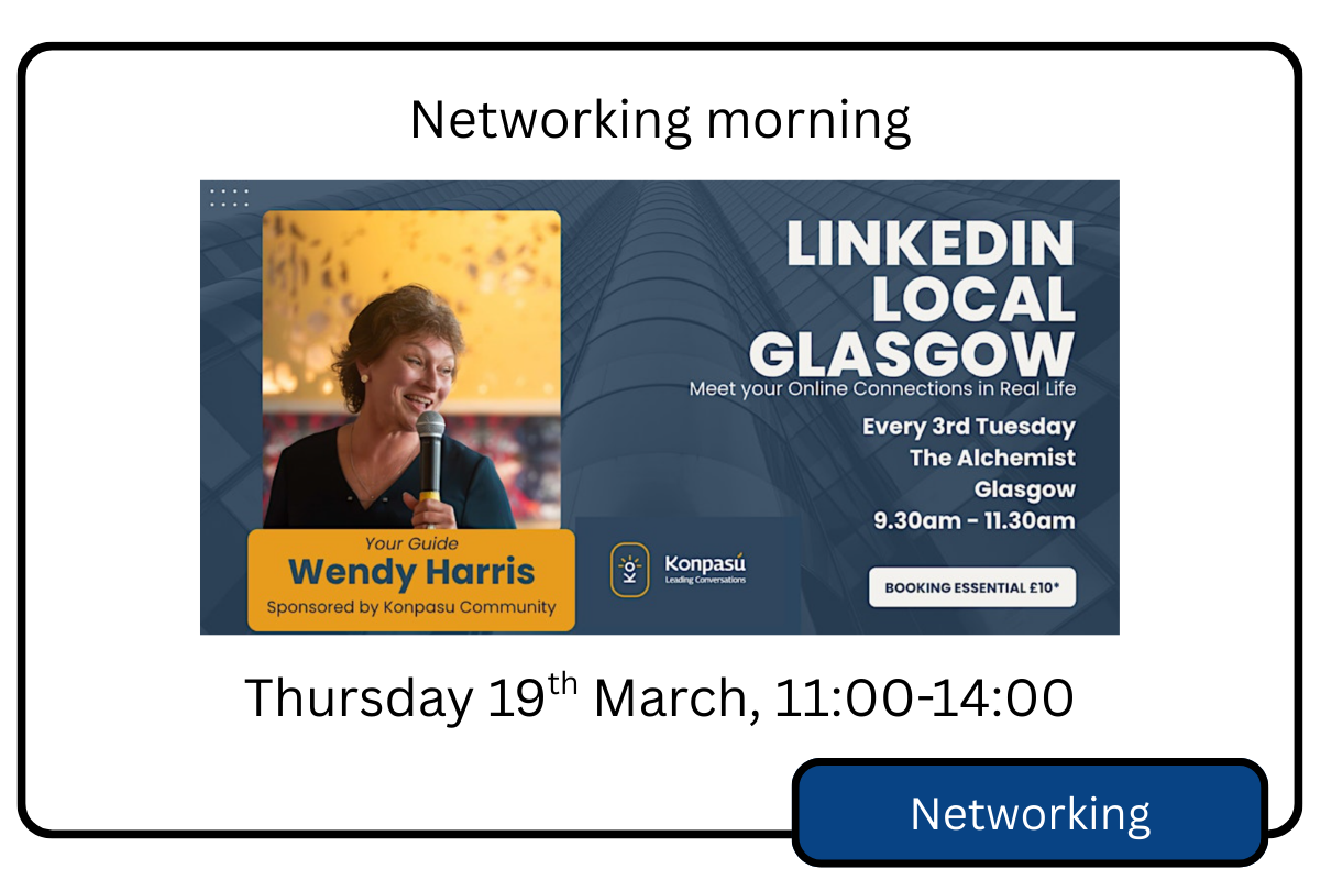 Here is a roundup of all the networking events that we know about week by week. We’ve also added some free and paid training events offered by our members, so if you have something you’d like to share, let us know via the link at the bottom of the page.