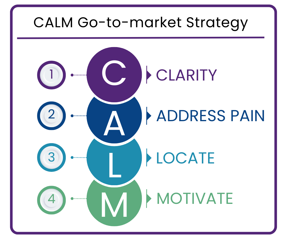 Shona: That’s a really good way of putting it. Today our go-to-market planning follows the CALM model. We’re going to cover customer clarity, addressing pain points, locating your audience, and motivating them to act.